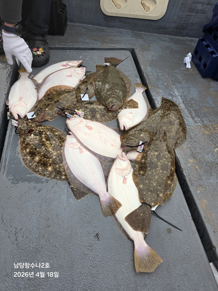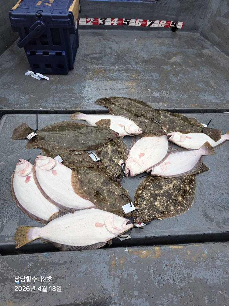 저희수나2호를 찿아주신 조사님들께 감사드립니다. 오늘도 수고 많이 하셨습니다. 4월18일 수나2호 조황사진입니다. 광어다운샷 다녀왔습니다...