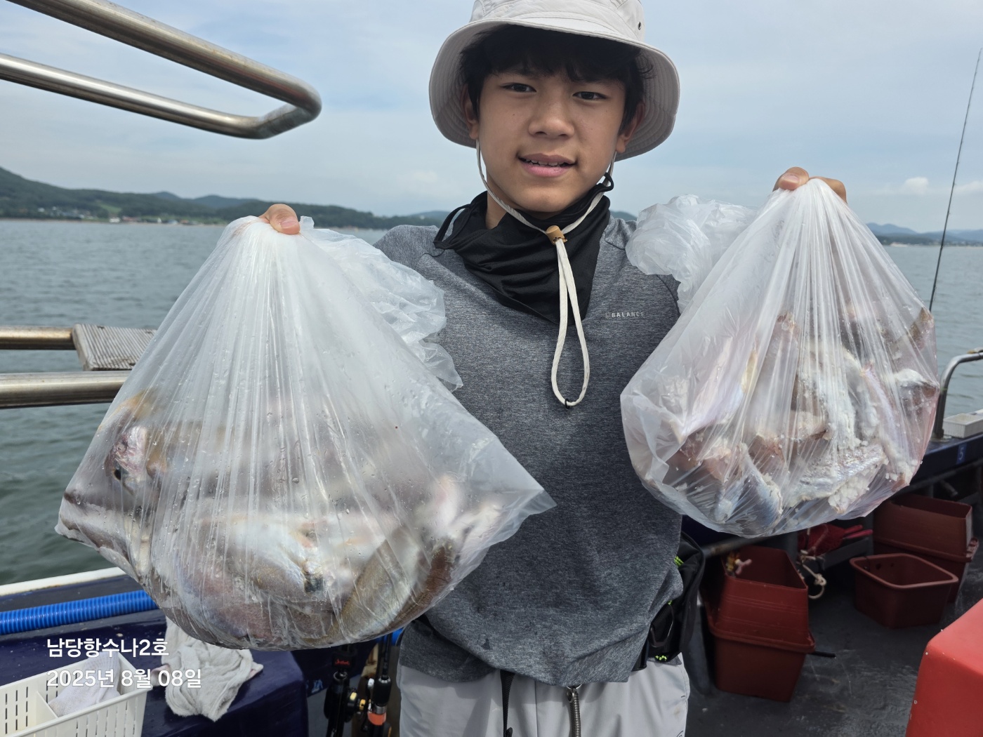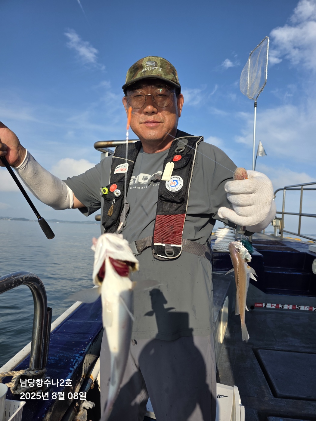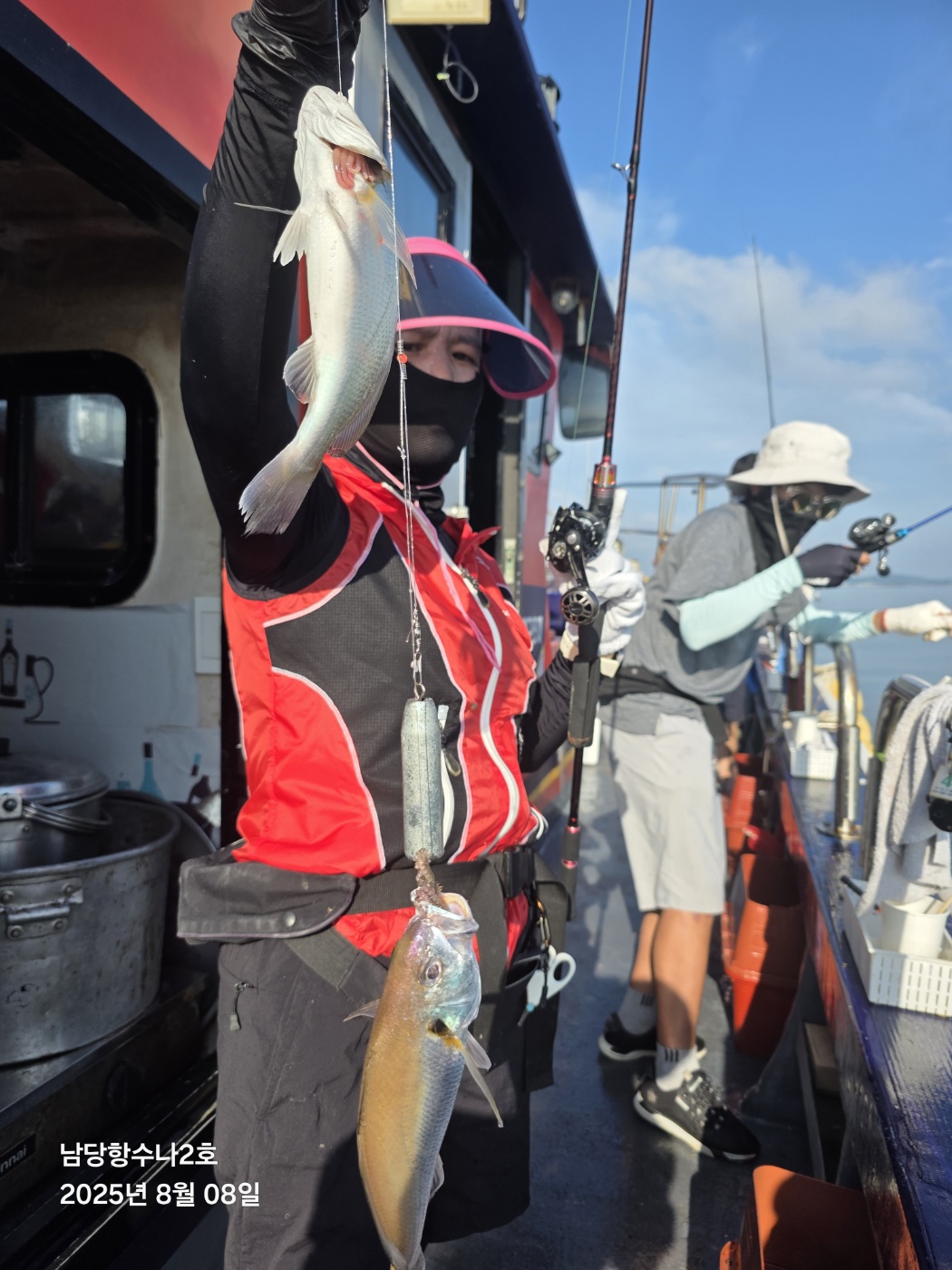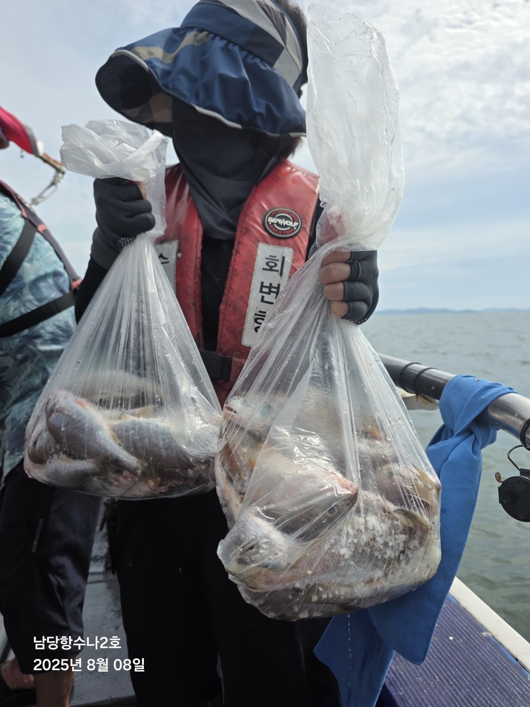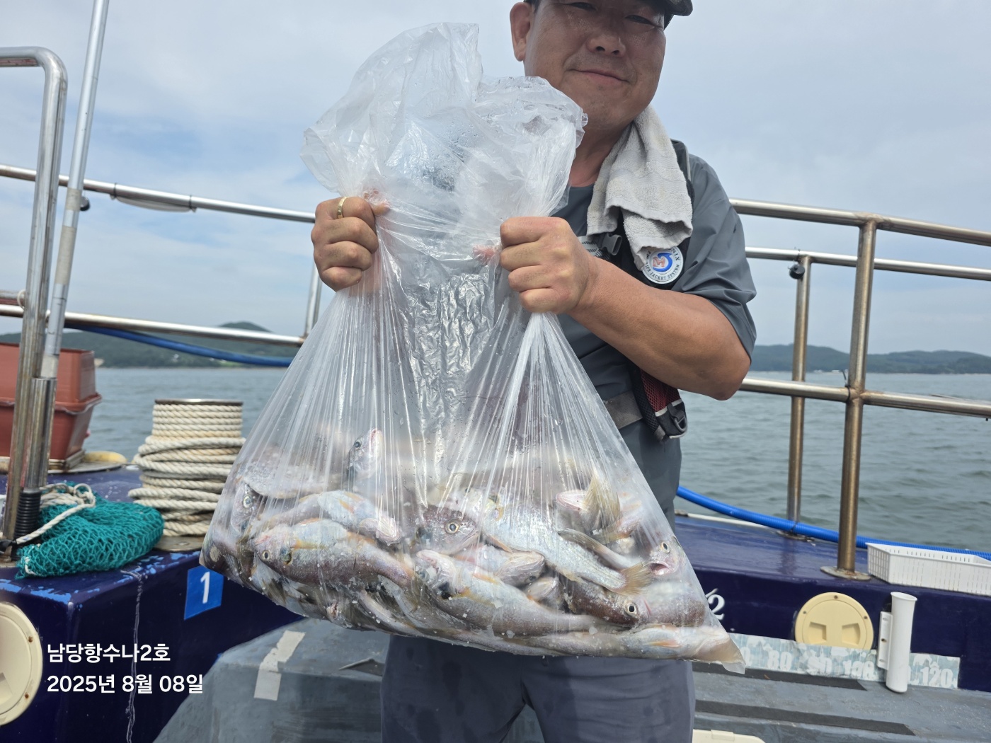 저희수나2호를 찿아주신 조사님들께 감사드립니다. 오늘도 수고 많이 하셨습니다. 8월8일 수나2호 조황사진입니다. 백조기잡고왔습니다..,