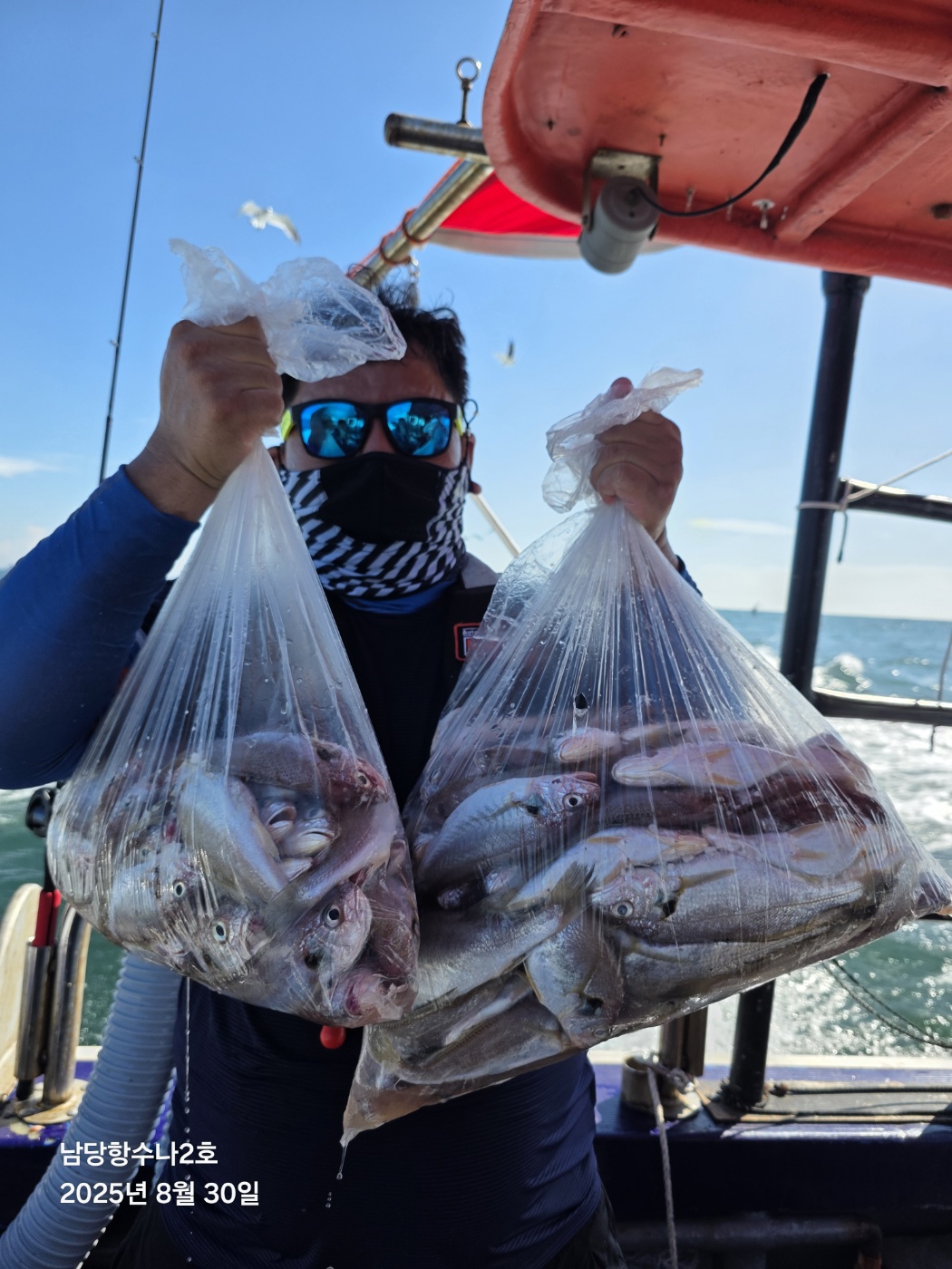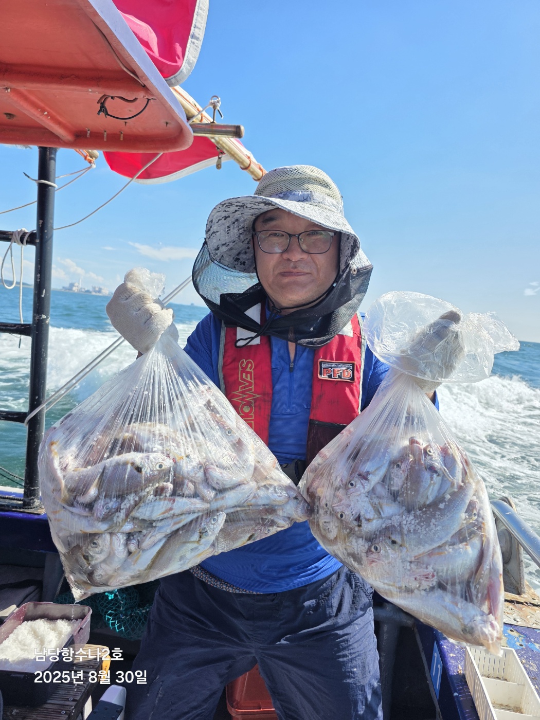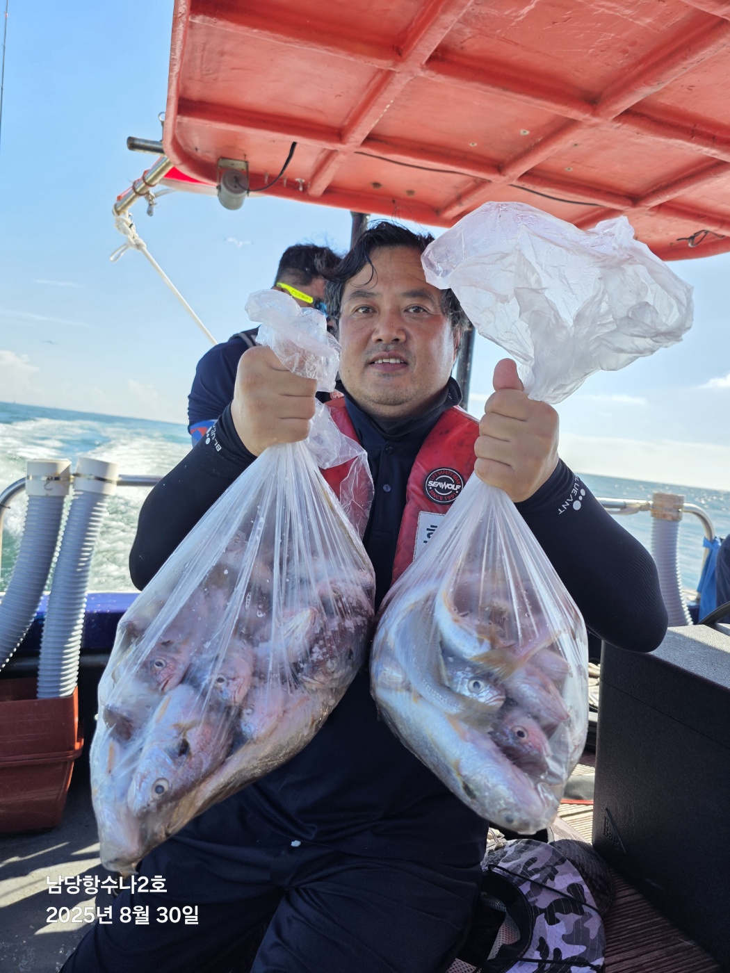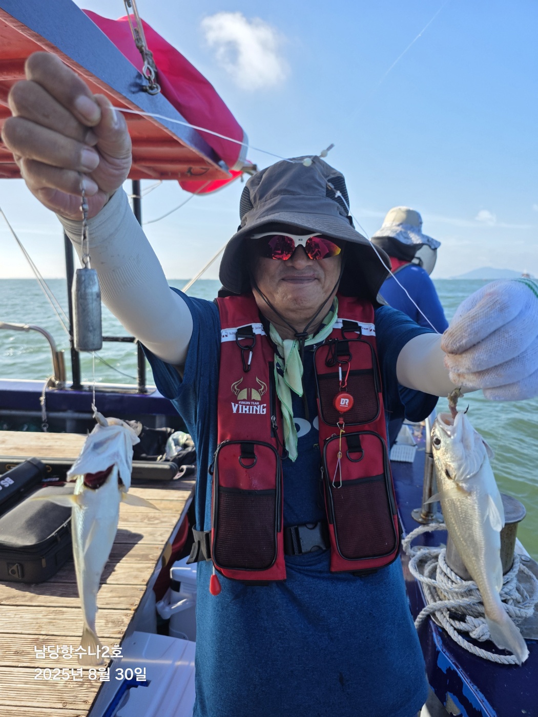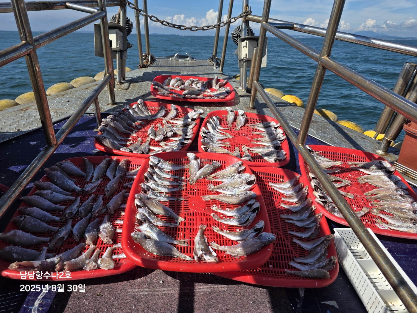저희수나2호를 찿아주신 조사님들께 감사드립니다. 오늘도 수고 많이 하셨습니다. 8월30일 수나2호 조황사진입니다. 백조기 졸업식하고 왔습니다..,