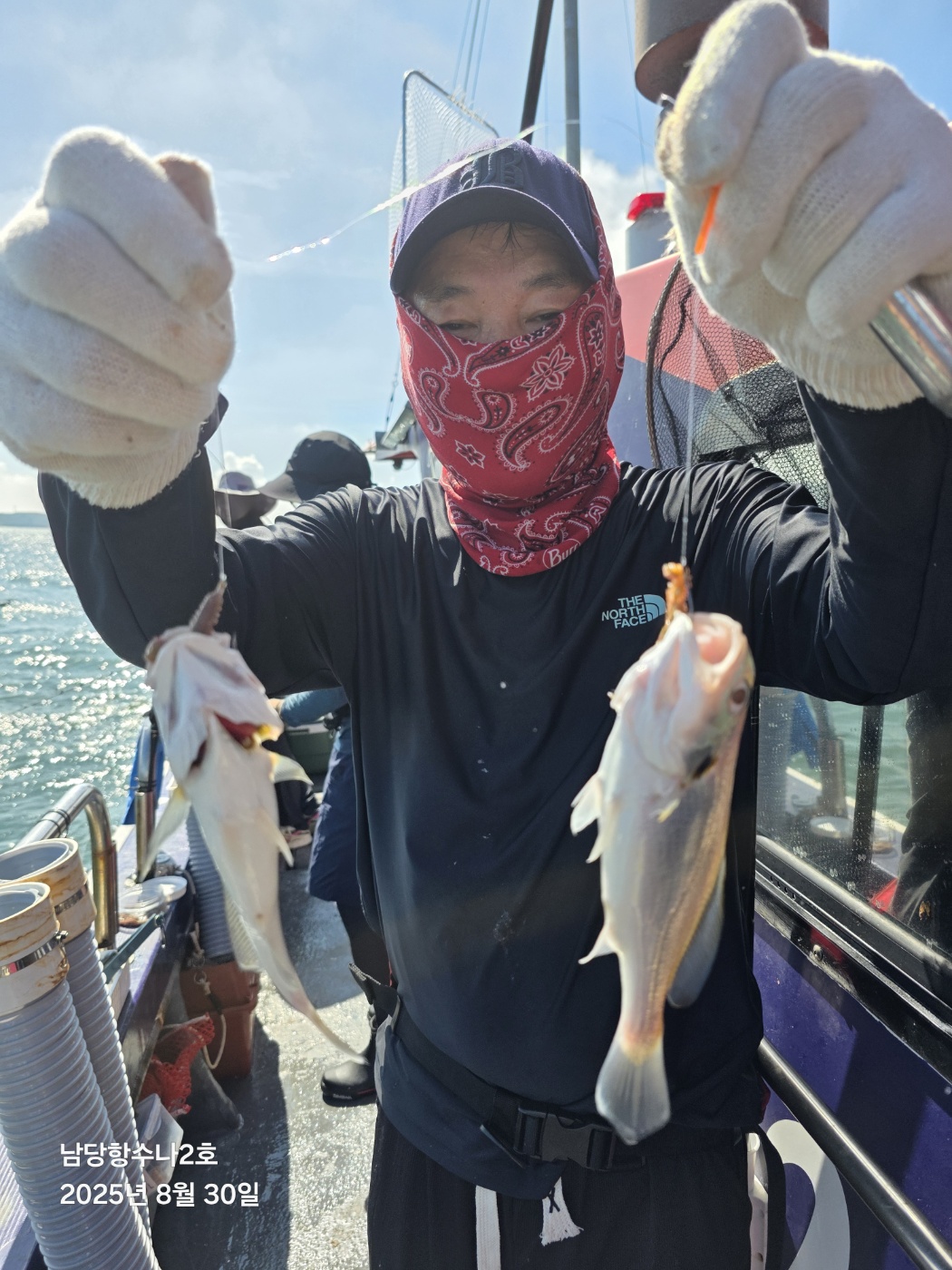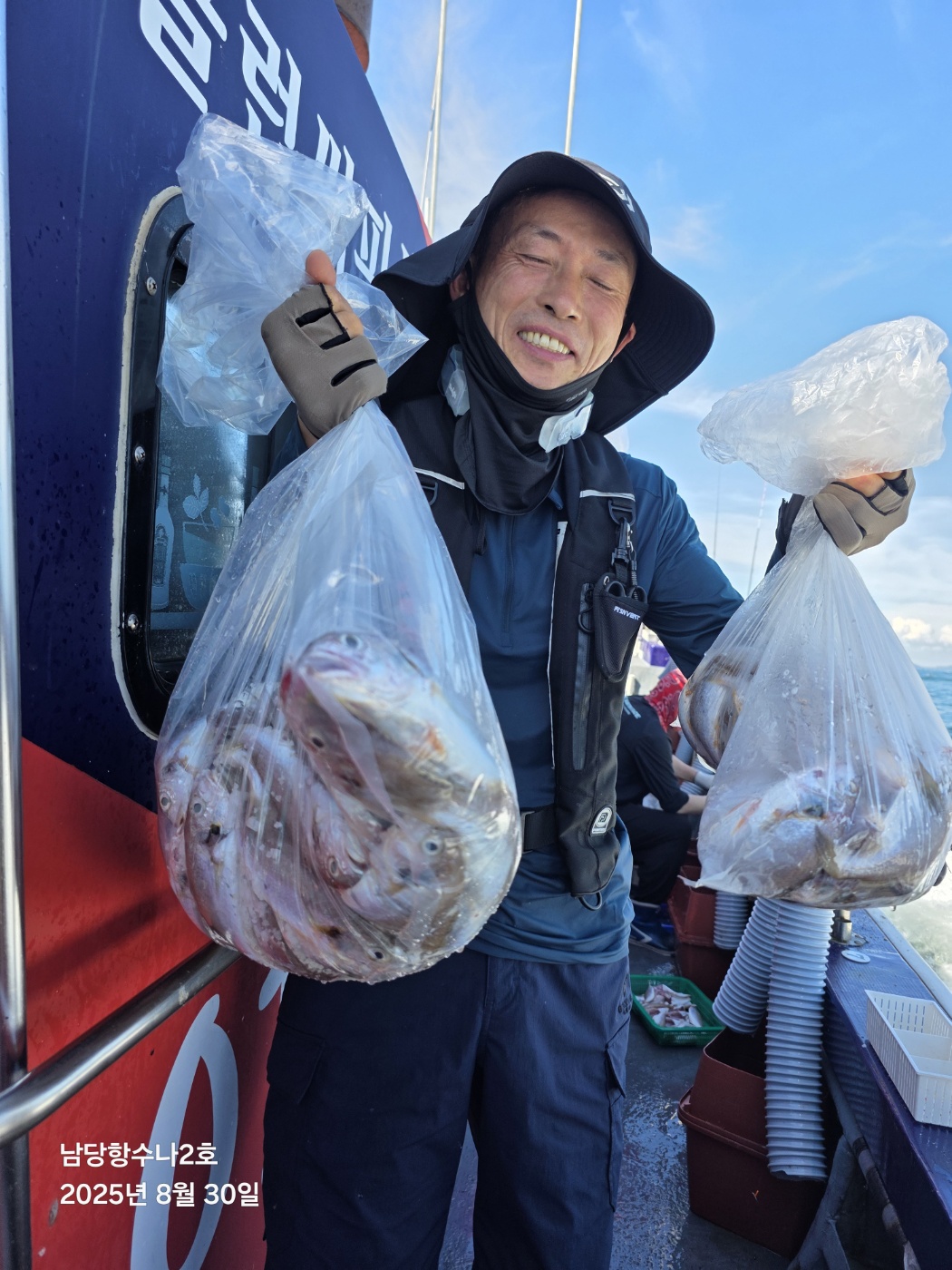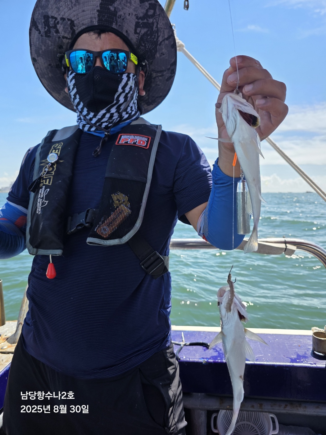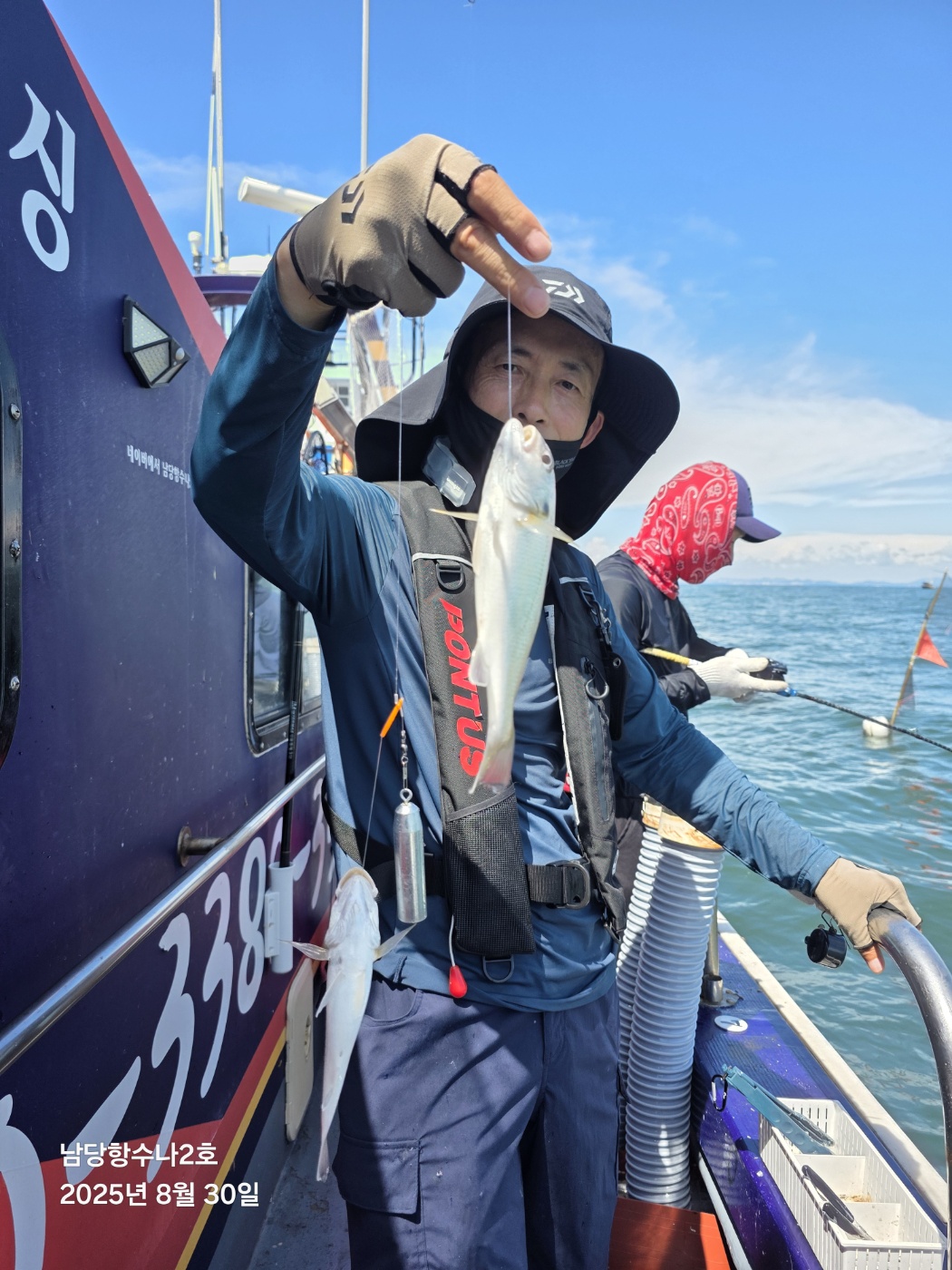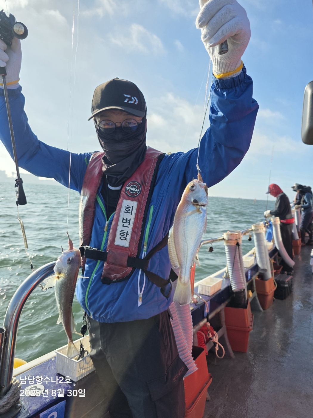 저희수나2호를 찿아주신 조사님들께 감사드립니다. 오늘도 수고 많이 하셨습니다. 8월30일 수나2호 조황사진입니다. 백조기 졸업식하고 왔습니다..,
