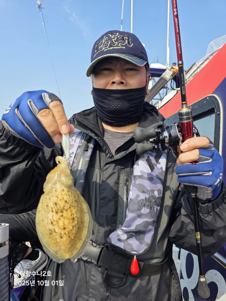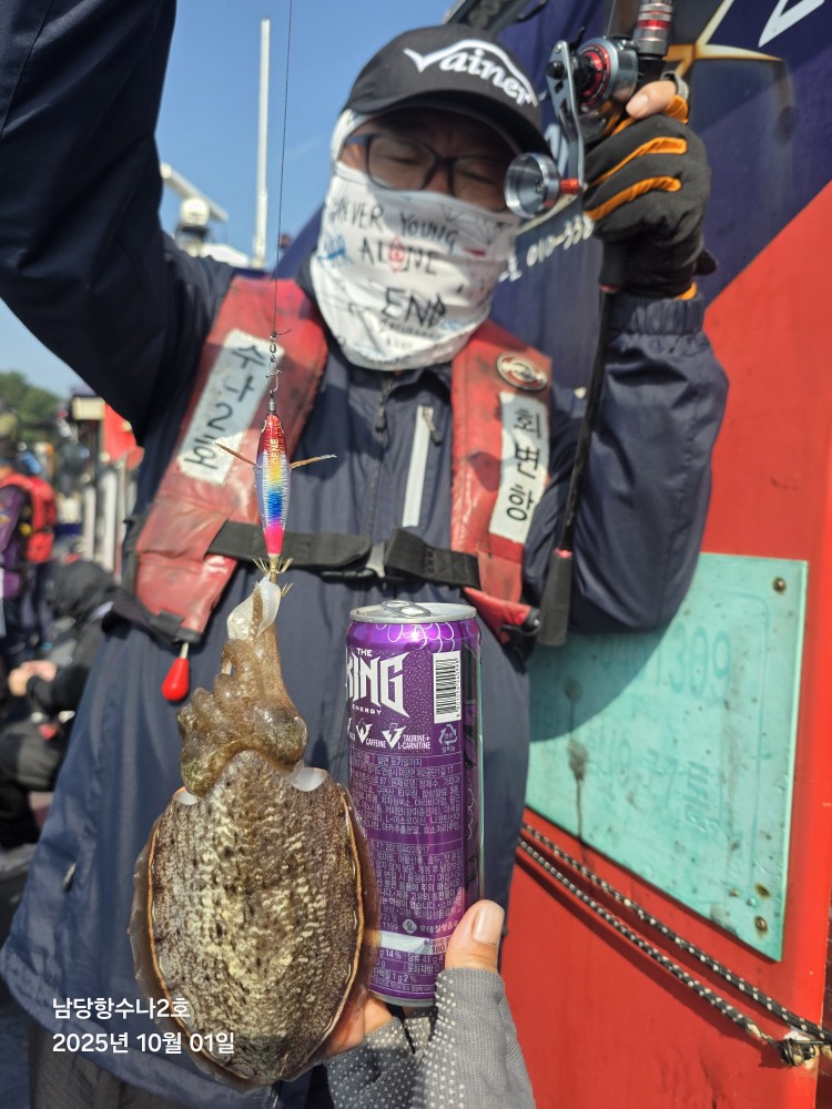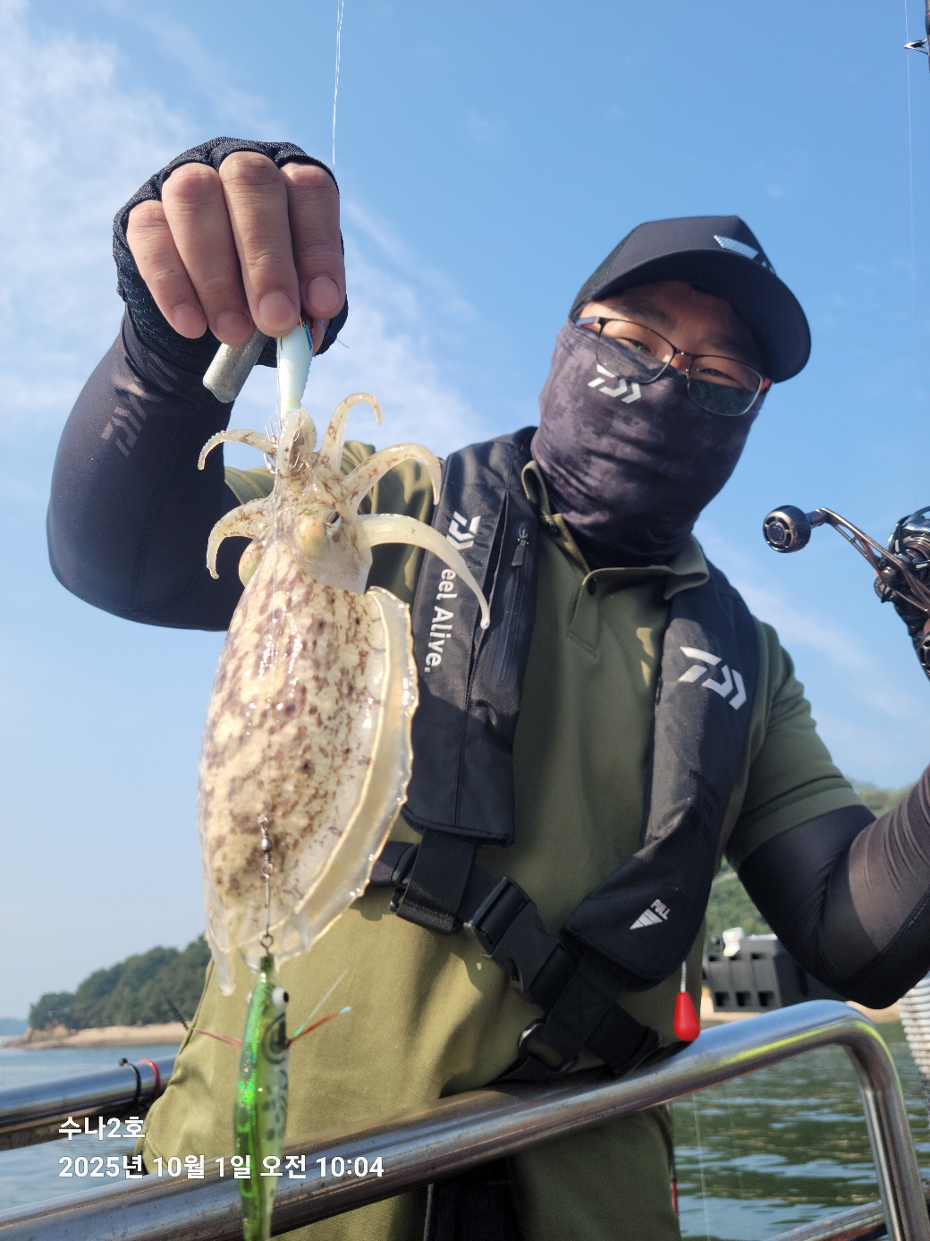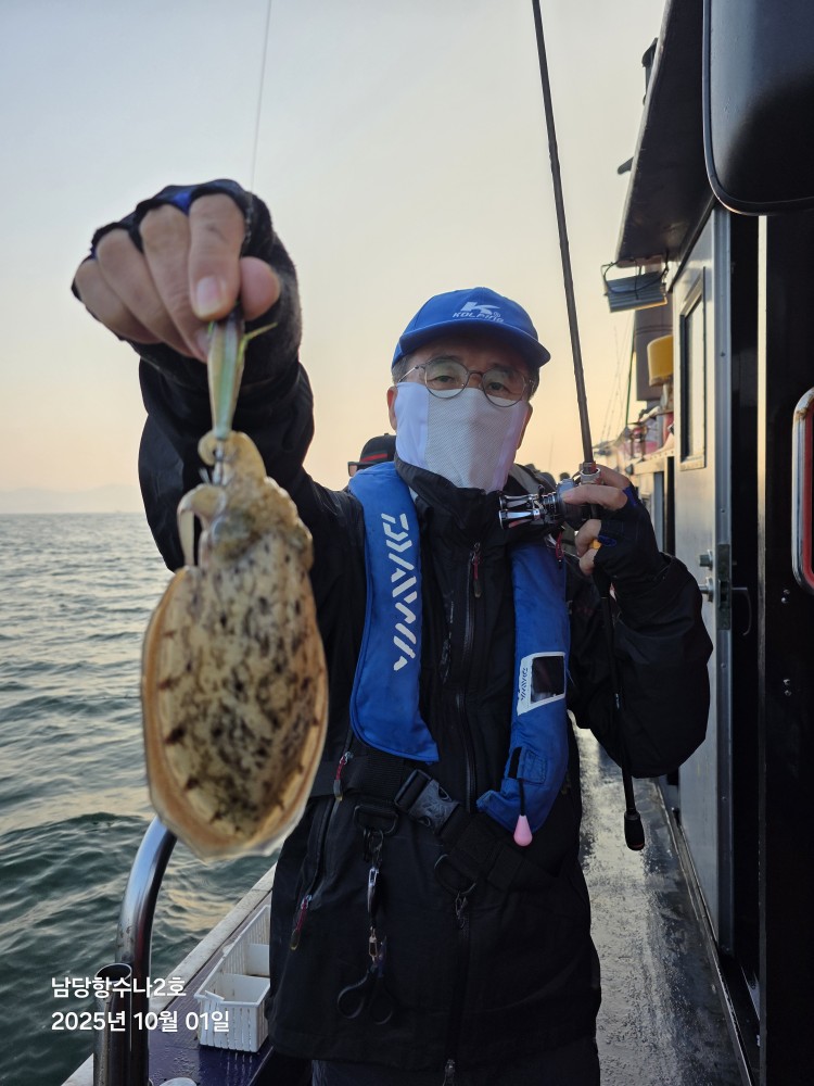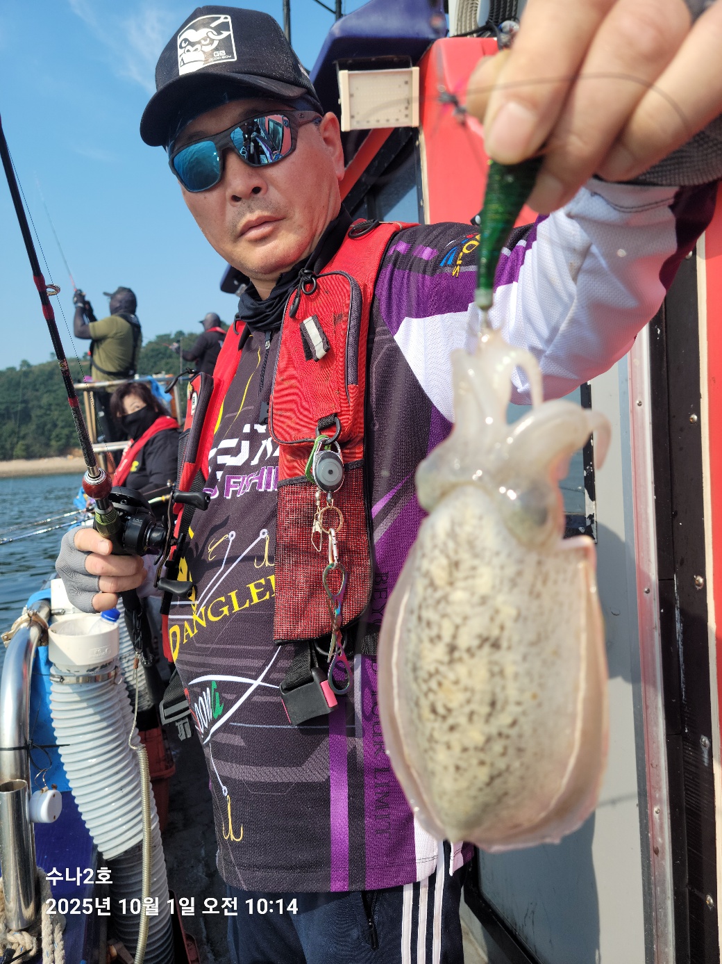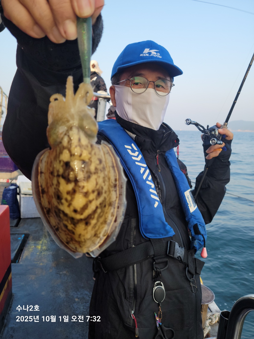 저희수나2호를 찿아주신 조사님들께 감사드립니다. 오늘도 수고 많이 하셨습니다. 10월1일 수나2호 조황사진입니다. 갑오징어.주꾸미 잡고왔습니다... 장원분과 최고연장조사님께는 바다에서 조업배 운영하는 지인을 만나 건네준