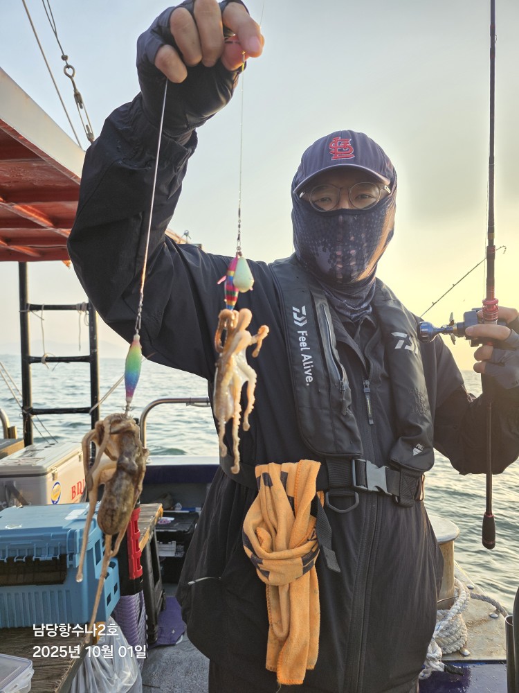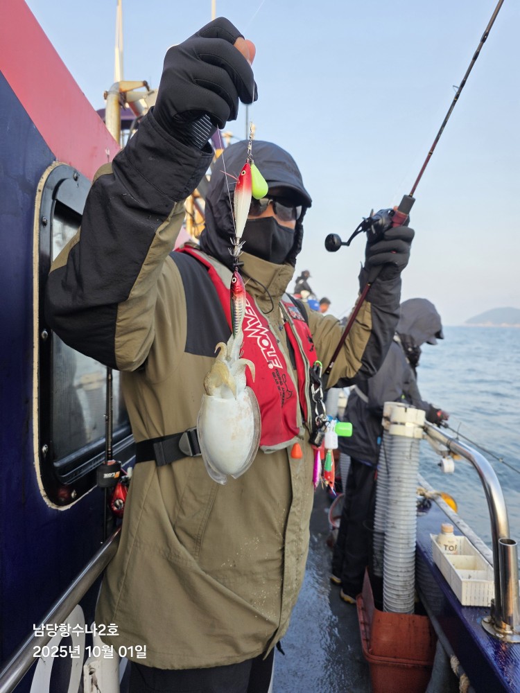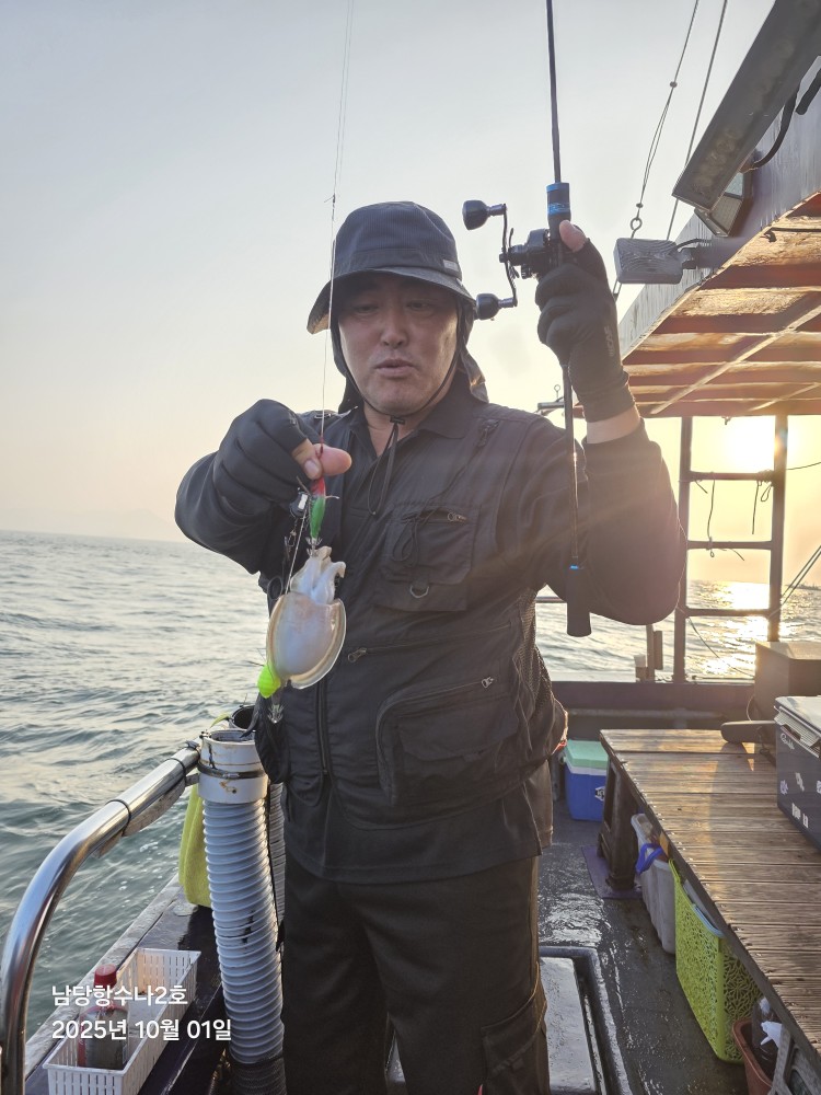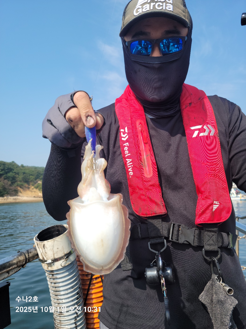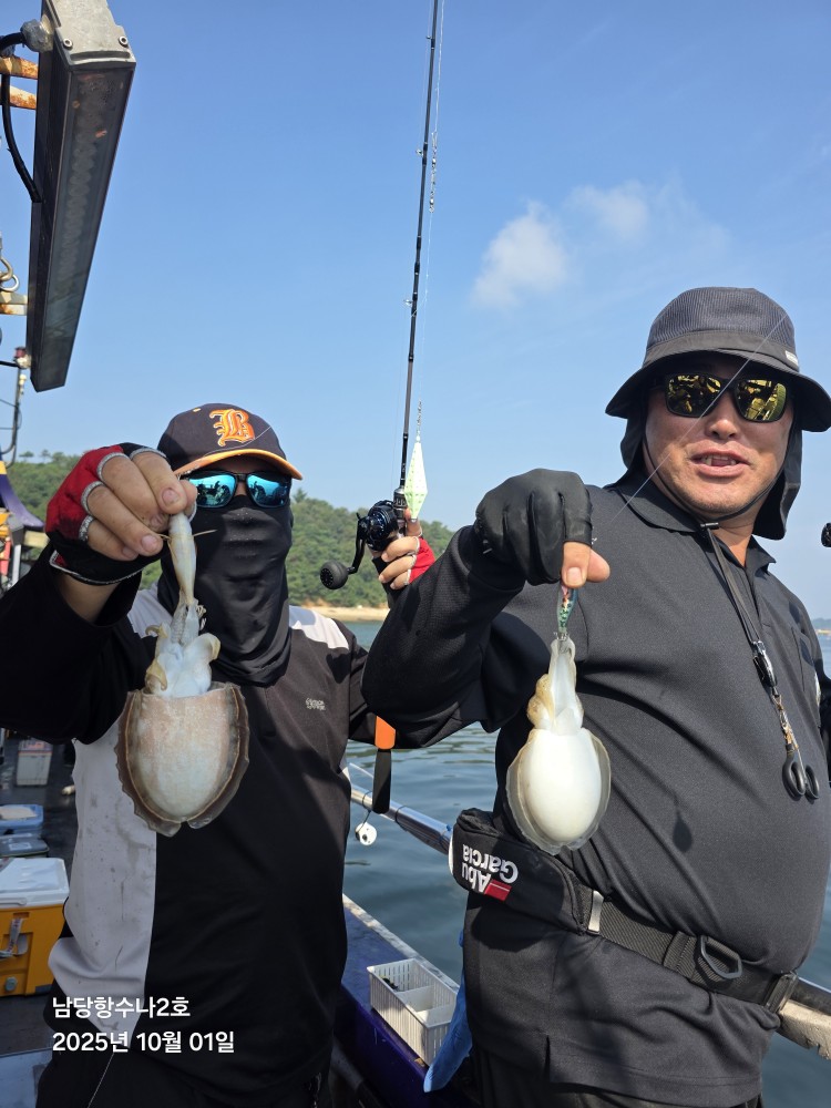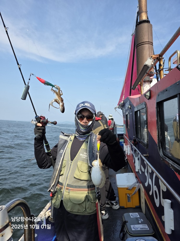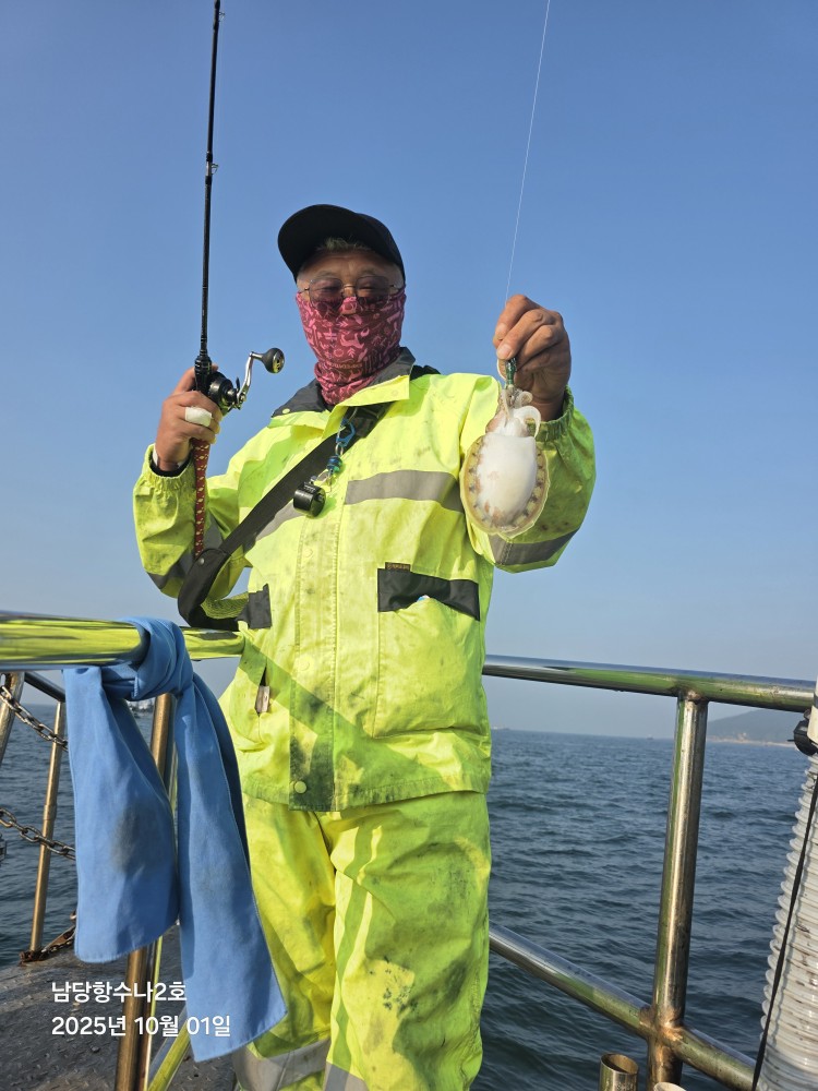 저희수나2호를 찿아주신 조사님들께 감사드립니다. 오늘도 수고 많이 하셨습니다. 10월1일 수나2호 조황사진입니다. 갑오징어.주꾸미 잡고왔습니다... 장원분과 최고연장조사님께는 바다에서 조업배 운영하는 지인을 만나 건네준