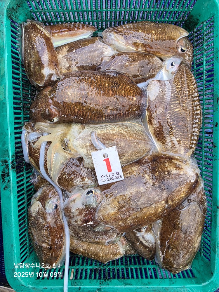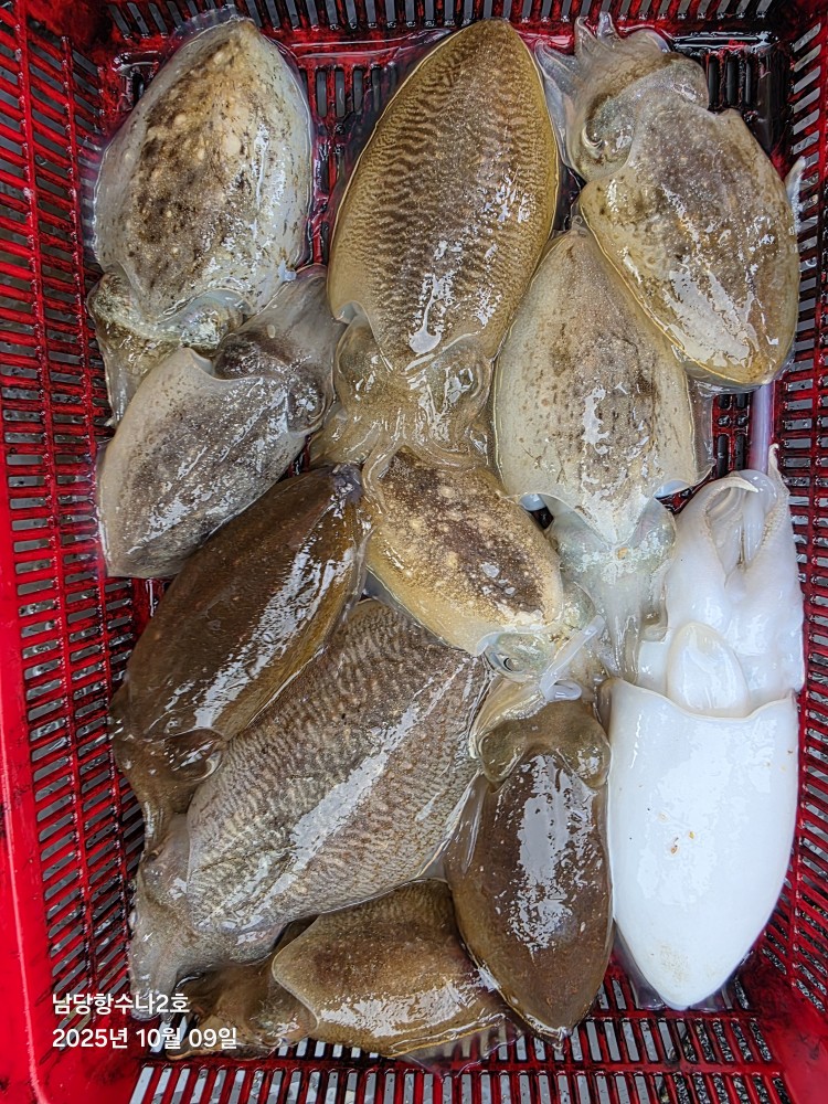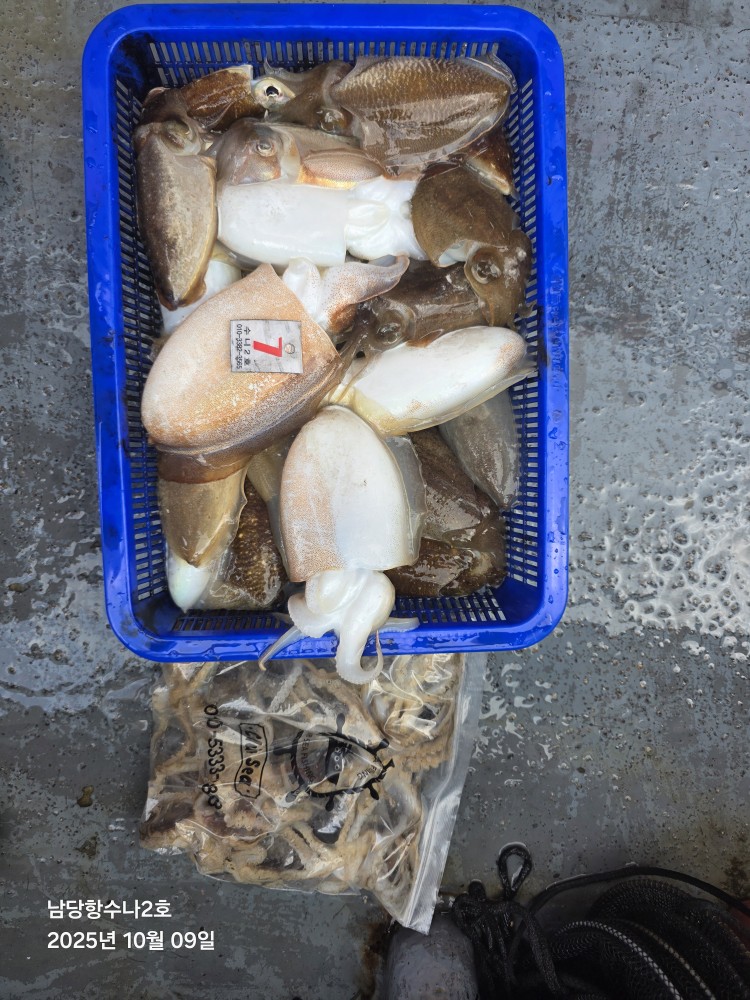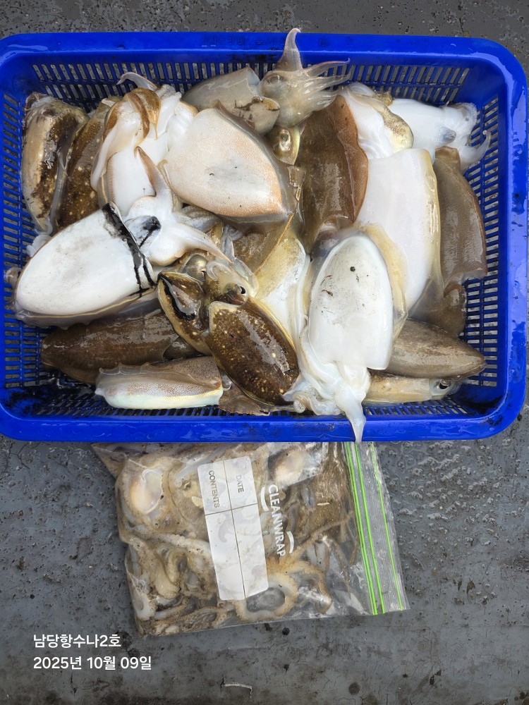 저희수나2호를 찿아주신 조사님들께 감사드립니다. 오늘도 수고 많이 하셨습니다. 10월9일 수나2호 조황사진입니다. 갑오징어.주꾸미 잡고왔습니다...