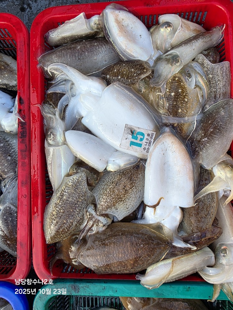 저희수나2호를 찿아주신 조사님들께 감사드립니다. 오늘도 수고 많이 하셨습니다. 10월23일 수나2호 조황사진입니다. 갑오징어 잡고왔습니다...