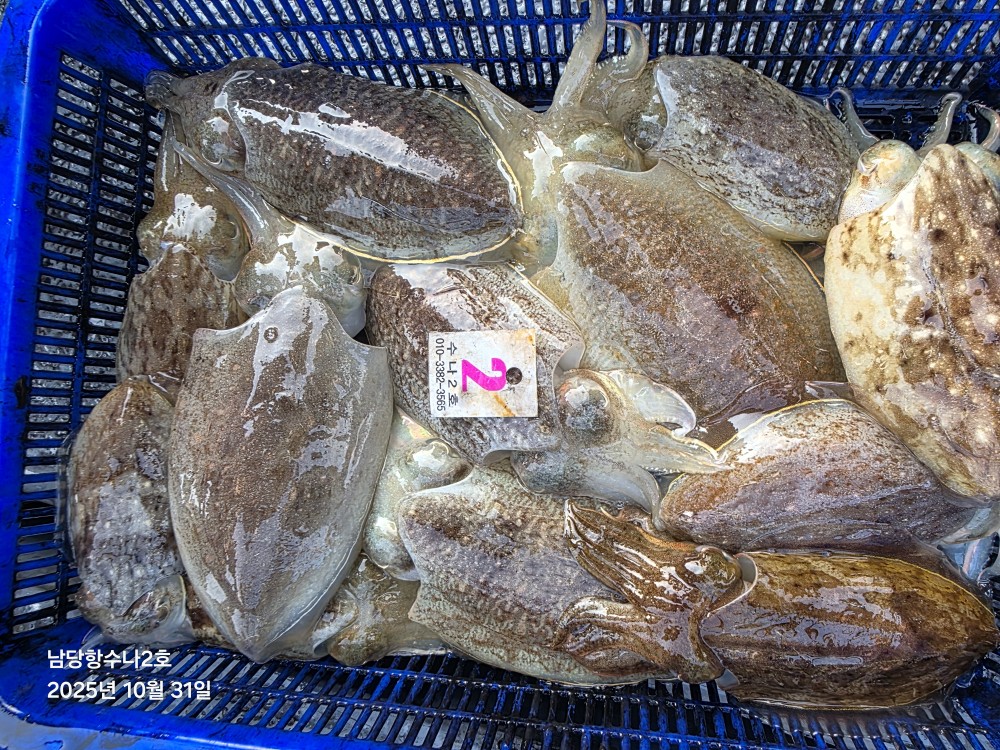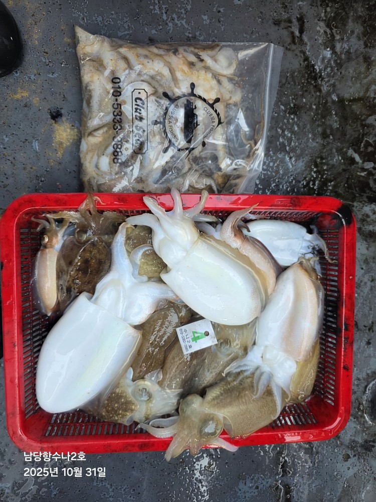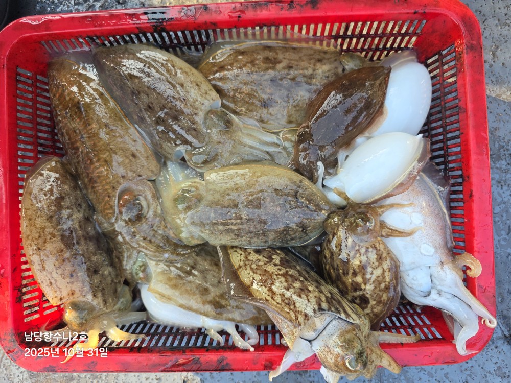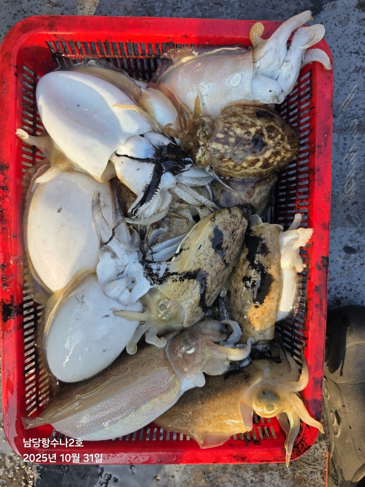 저희수나2호를 찿아주신 조사님들께 감사드립니다. 오늘도 수고 많이 하셨습니다. 10월31일 수나2호 조황사진입니다. 갑오징어 잡고왔습니다...