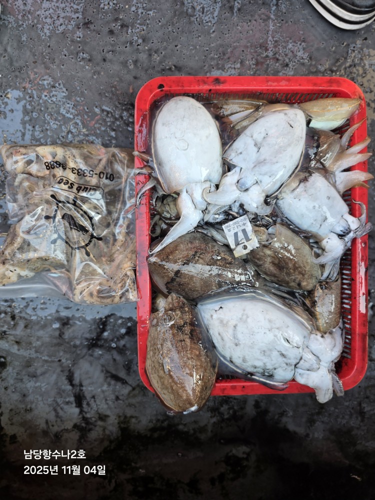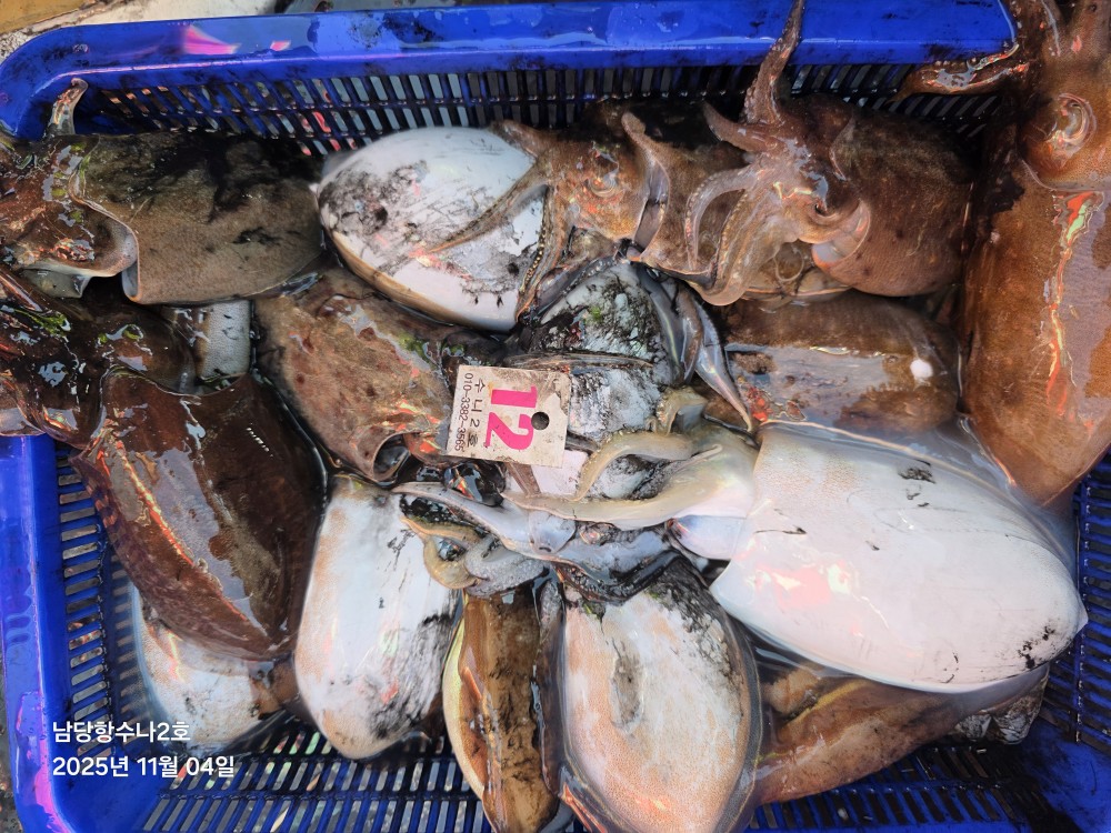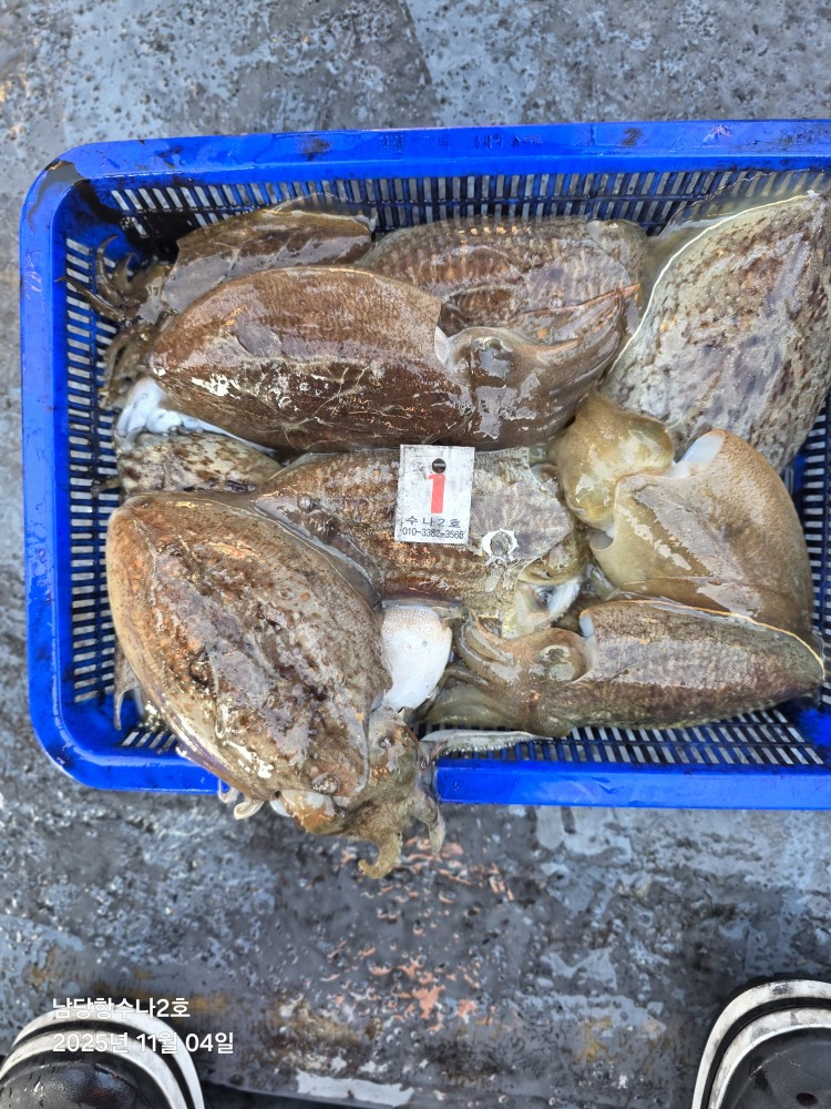 저희수나2호를 찿아주신 조사님들께 감사드립니다. 오늘도 수고 많이 하셨습니다. 11월4일 수나2호 조황사진입니다. 갑오징어 잡고왔습니다...