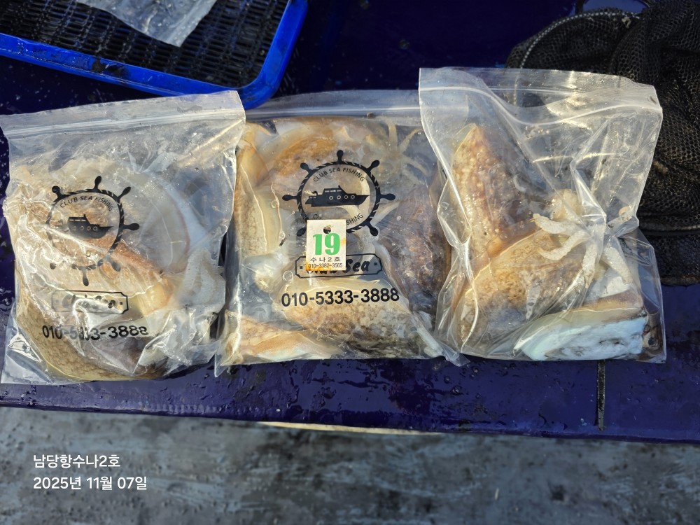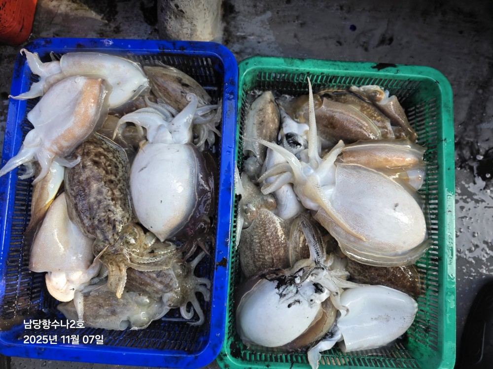 오늘도 수고 많이 하셨습니다. 11월7일 수나2호 조황사진입니다. 갑오징어 잡고왔습니다...
