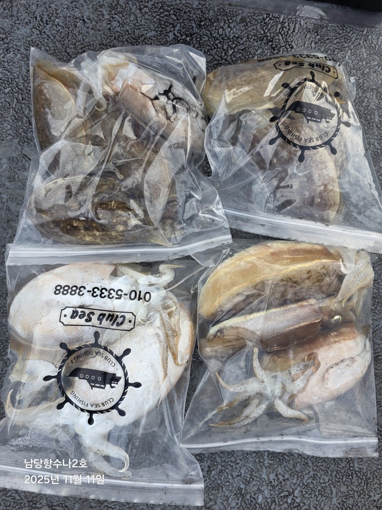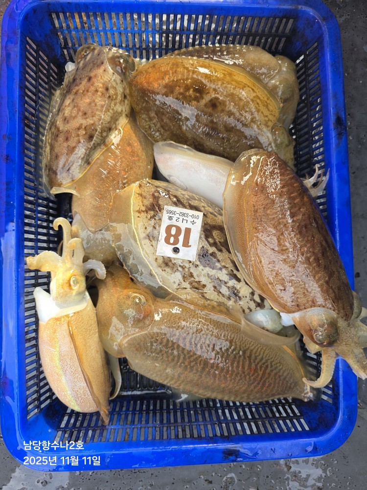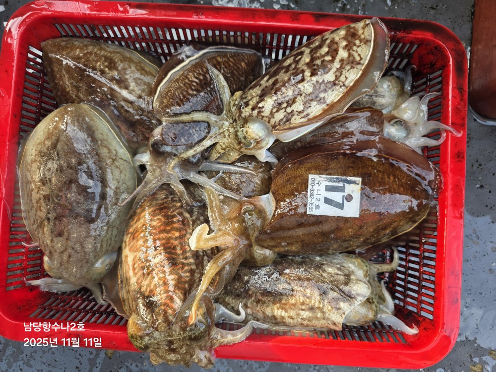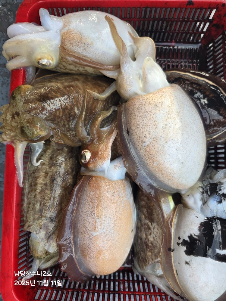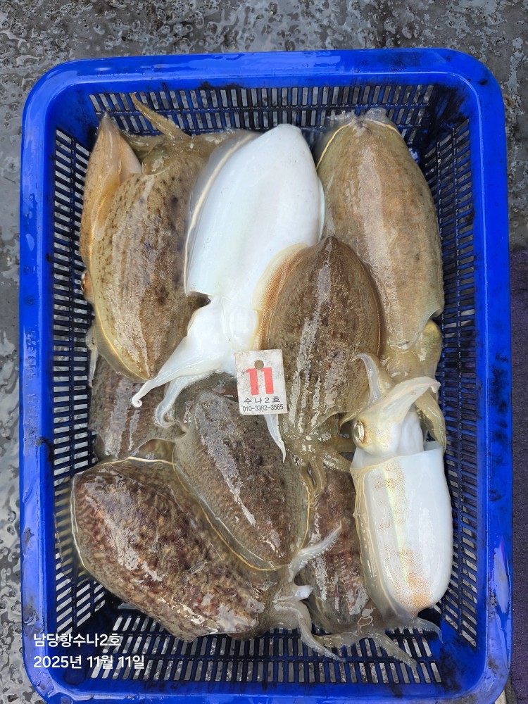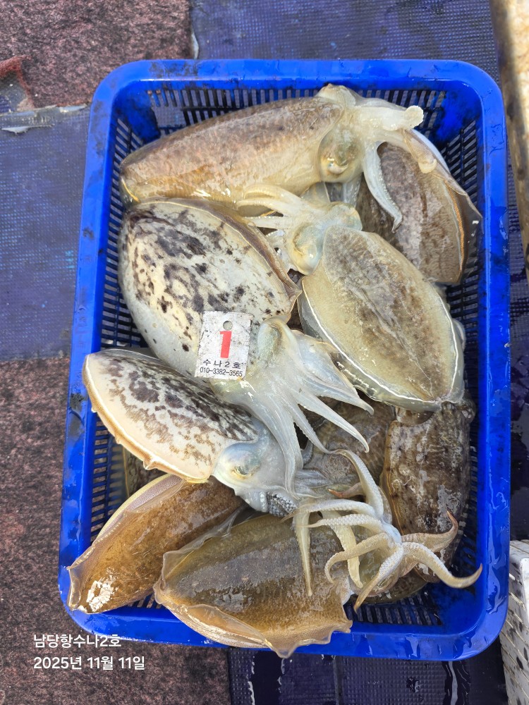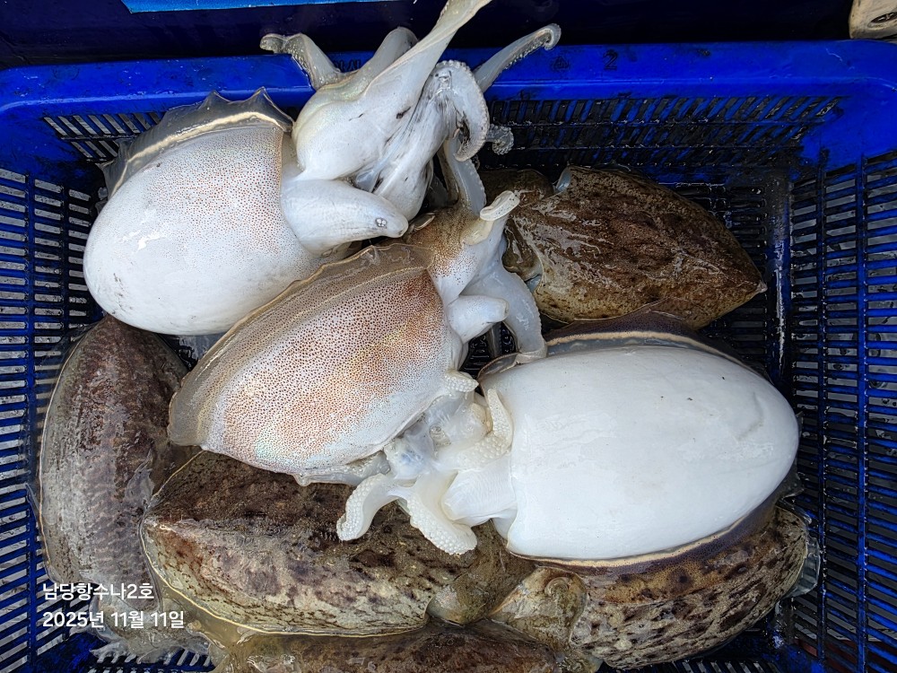 저희수나2호를 찿아주신 조사님들께 감사드립니다. 오늘도 수고 많이 하셨습니다. 11월11일 수나2호 조황사진입니다. 갑오징어 잡고왔습니다...