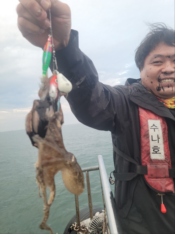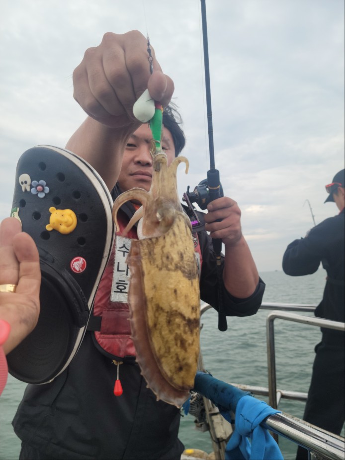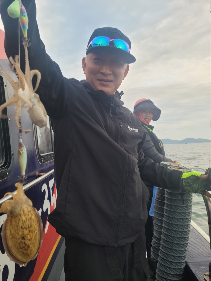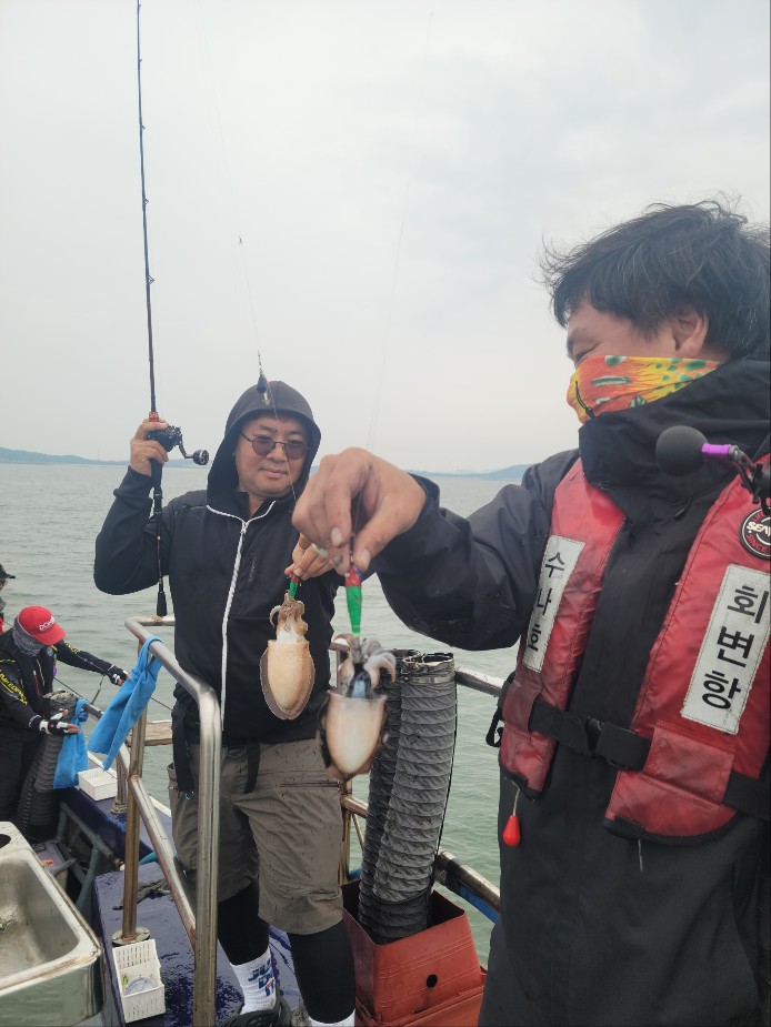 저희 수나2호 찾아주신 조사님들께 감사드립니다. 갑오징어 잡으시고즐거운 시간을 보내고 입항하였습니다.