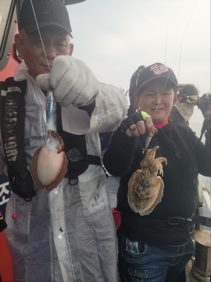 왕갑오징어 포인트로 다니며 손맛보시며 즐거운 시간을 보내고 입항하였습니다.