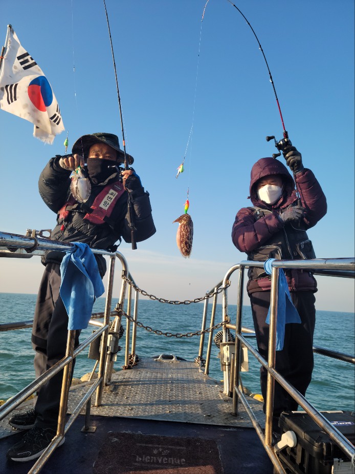 저희 수나2호 찾아주신 조사님들께 감사드립니다. 갑오징어 잡으시며 즐거운 시간을 보내고 입항하였습니다.