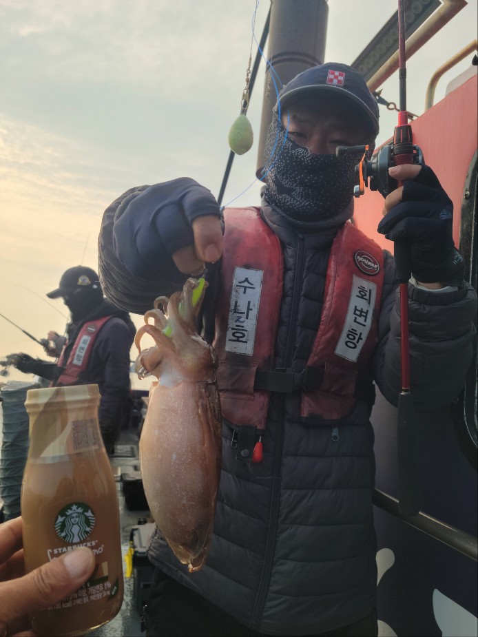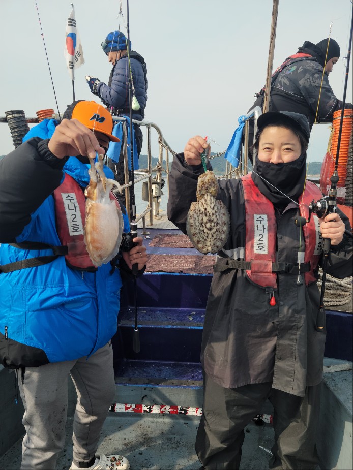 저희 수나2호 찾아주신 조사님들께 감사드립니다. 갑오징어 잡으시며 즐거운 시간을 보내고 입항하였습니다.