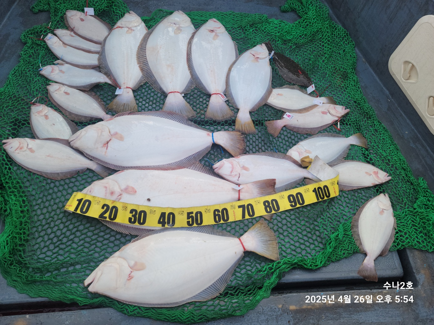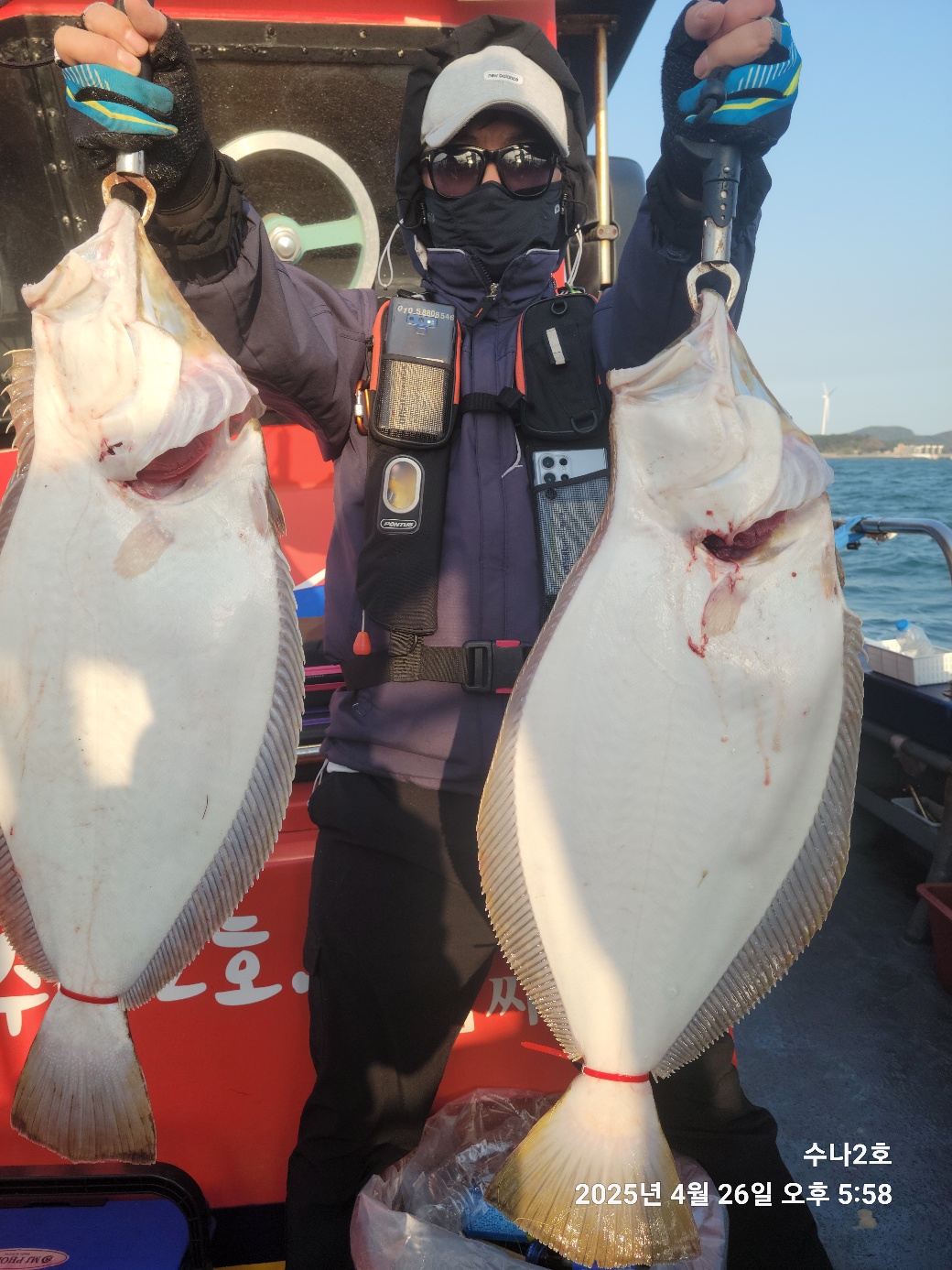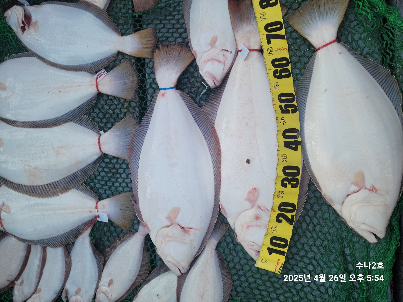 감사드립니다. 4월26일 수나2호 조황사진입니다. 광어 잡고왔습니다.