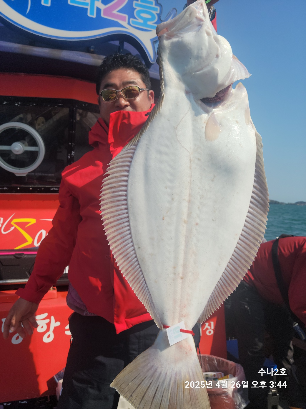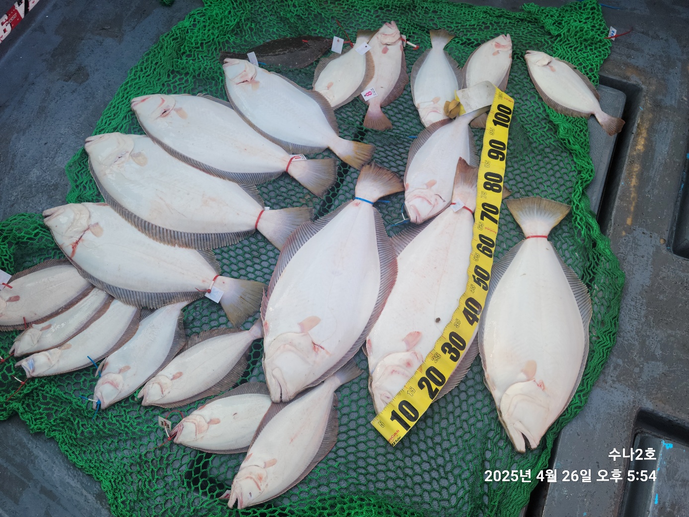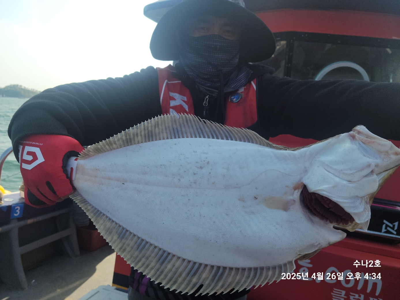 감사드립니다. 4월26일 수나2호 조황사진입니다. 광어 잡고왔습니다.