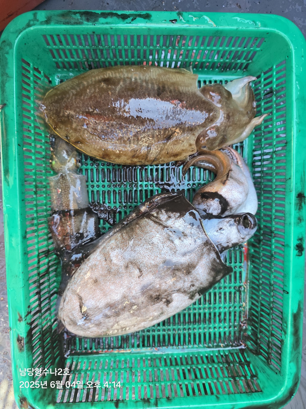 저희수나2호를 찿아주신 조사님들께 감사드립니다. 오늘도 수고 많이 하셨습니다. 6월4일 수나2호 조황사진입니다. 봄갑오징어 잡고왔습니다..